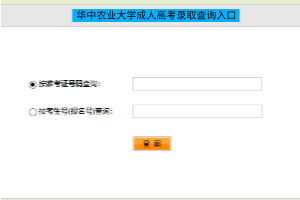 查询入口:华中农业大学成人高考录取结果查询入口(点击文字进入查询系统)